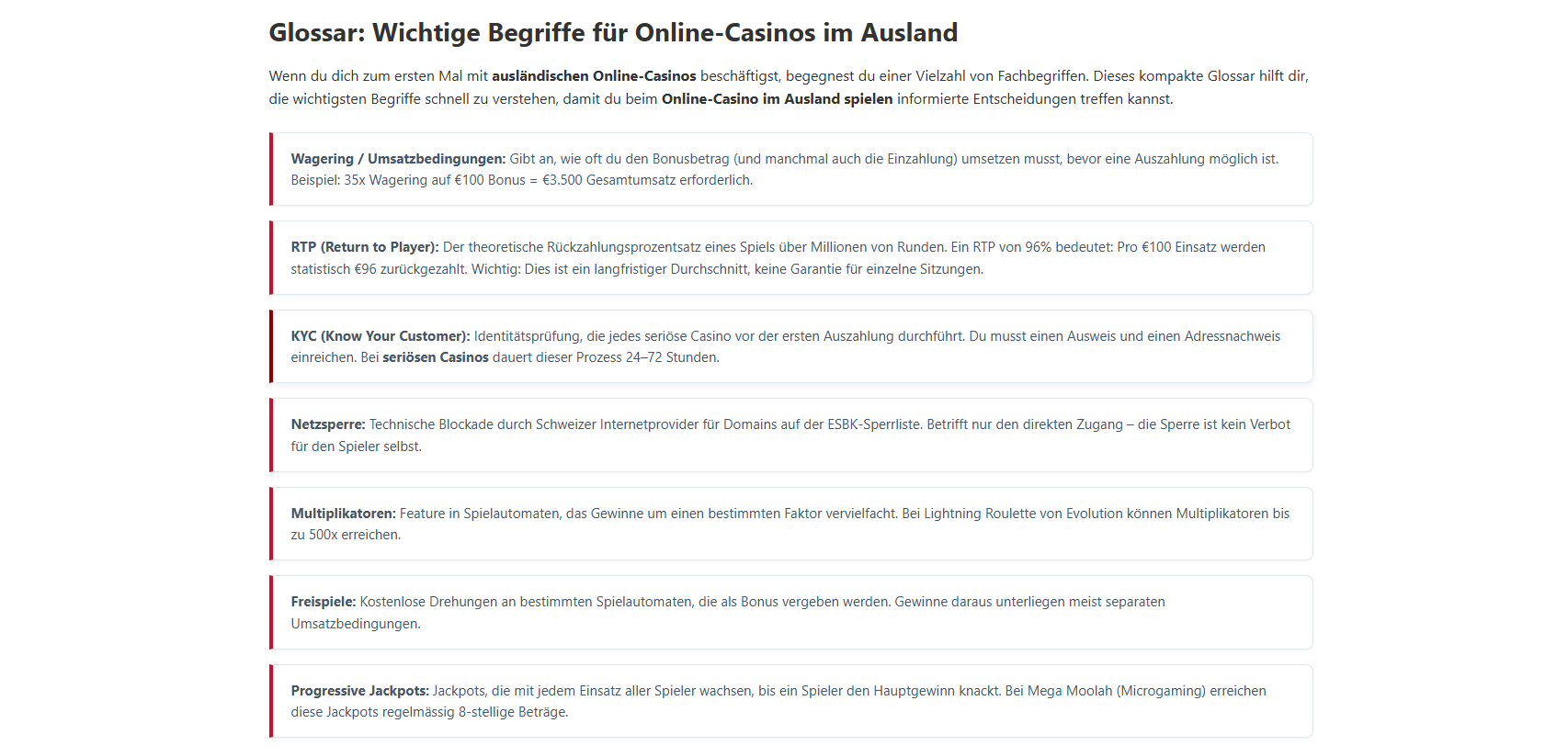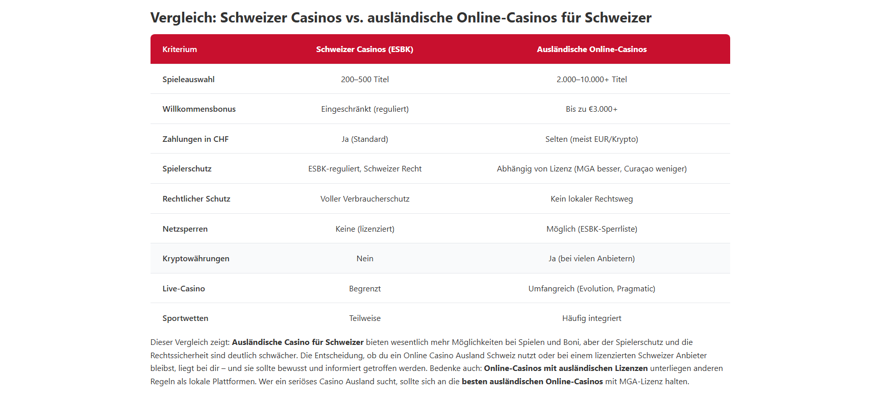 Sind ausländische Online Casinos in der Schweiz legal?Das Spielen bei ausländischen Online-Casinos ist für Schweizer Spieler nicht strafbar. Das Geldspielgesetz richtet sich gegen die Anbieter, nicht gegen die Spieler. Allerdings fehlt der Schweizer Verbraucherschutz, und bei Streitigkeiten gibt es keinen lokalen Rechtsweg. Du spielst auf eigenes Risiko.