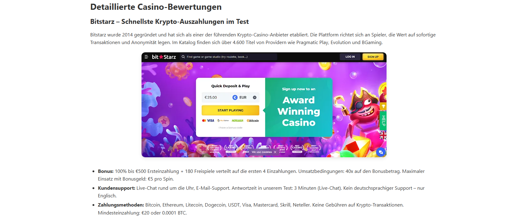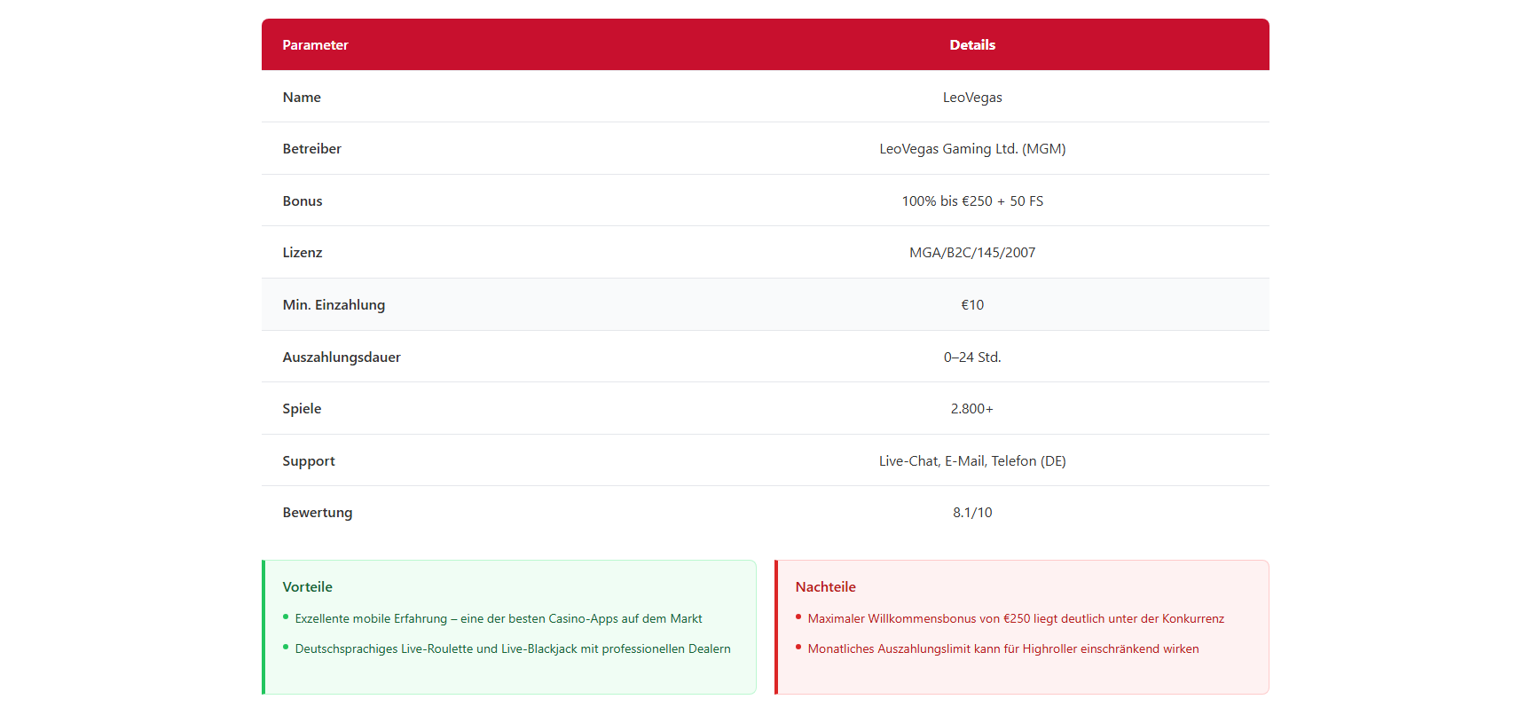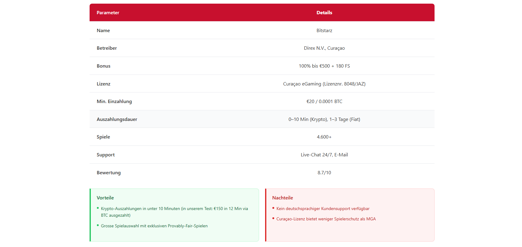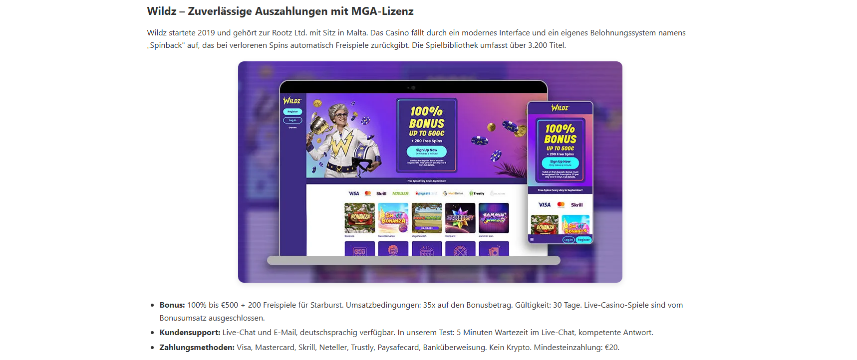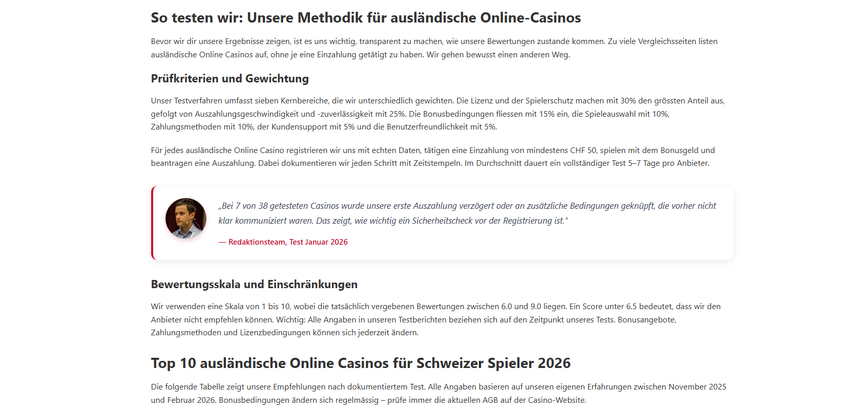 Wie schnell sind Auszahlungen bei ausländischen Casinos?Das variiert stark. In unserem Test reichte die Spanne von 12 Minuten (Bitstarz, Krypto) bis zu 4 Tagen (Vulkan Vegas). MGA-lizenzierte Casinos wie Wildz und LeoVegas lagen bei 14–28 Stunden. Erstauszahlungen dauern wegen der KYC-Verifizierung generell länger.