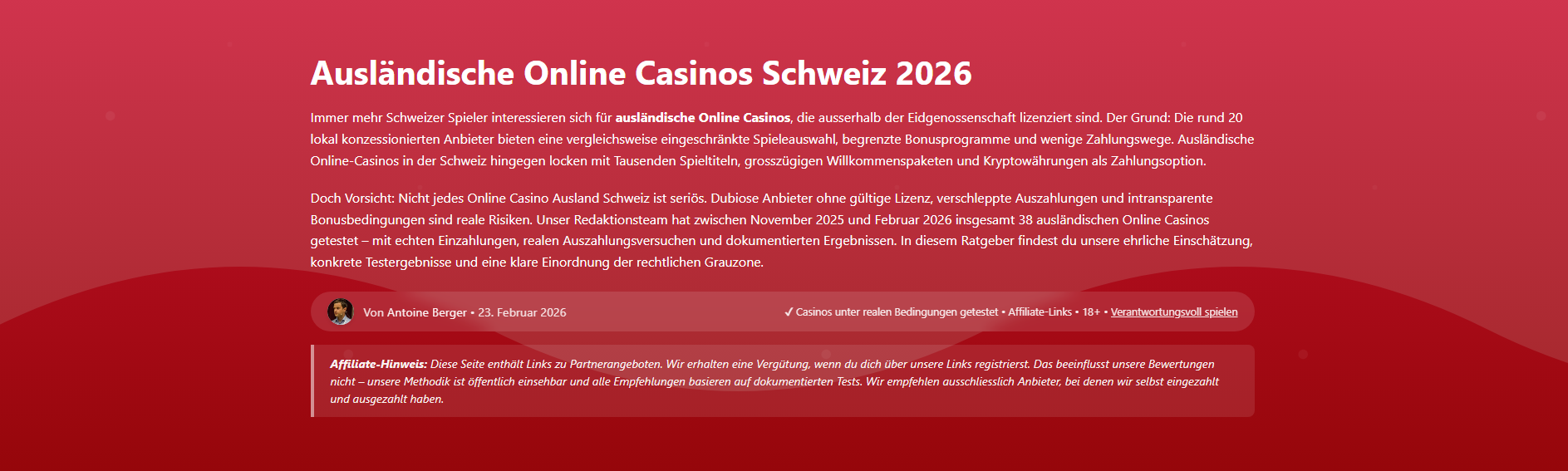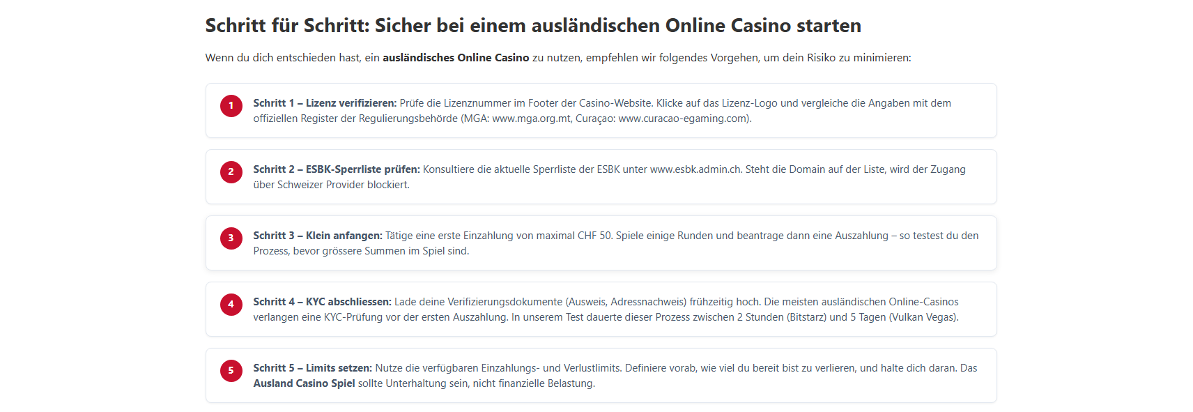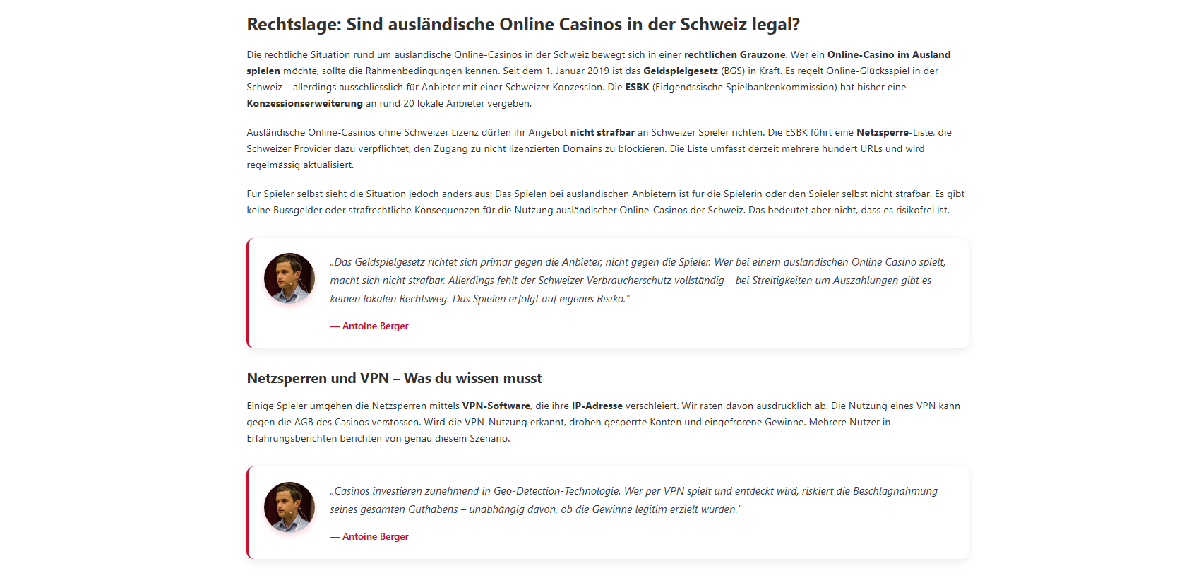 Kann ich einen VPN nutzen, um Netzsperren zu umgehen?Technisch ja, aber wir raten dringend davon ab. Die Nutzung von VPN-Software verstösst gegen die AGB der meisten Casinos. Wird die VPN-Nutzung erkannt, drohen gesperrte Konten und eingefrorene Gewinne. Mehrere dokumentierte Fälle bestätigen dieses Risiko.