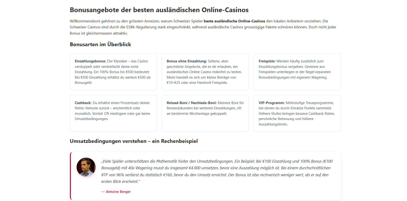 Muss ich Steuern auf Gewinne aus ausländischen Casinos zahlen?In der Schweiz sind Glücksspielgewinne aus seriösen Casinos grundsätzlich steuerfrei. Allerdings gibt es eine Einschränkung: Gewinne aus nicht-konzessionierten ausländischen Online-Casinos bewegen sich in einer steuerlichen Grauzone. Wir empfehlen, im Zweifelsfall einen Steuerberater zu konsultieren.